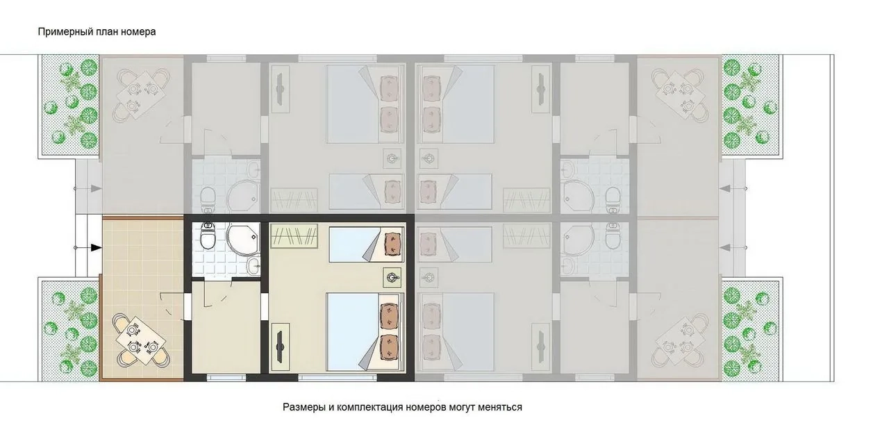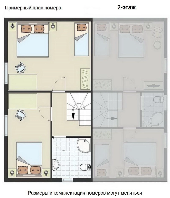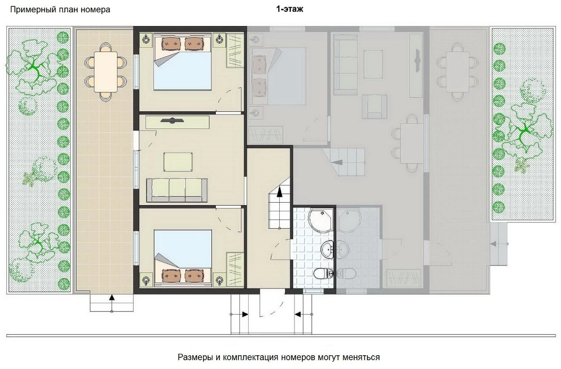 | SUPERIOR double 1 комната с террасой (1-й этаж) | 2-х местный (нет доп места) | 46 000 ₸ | 58 000 ₸ | 48 000 ₸ |